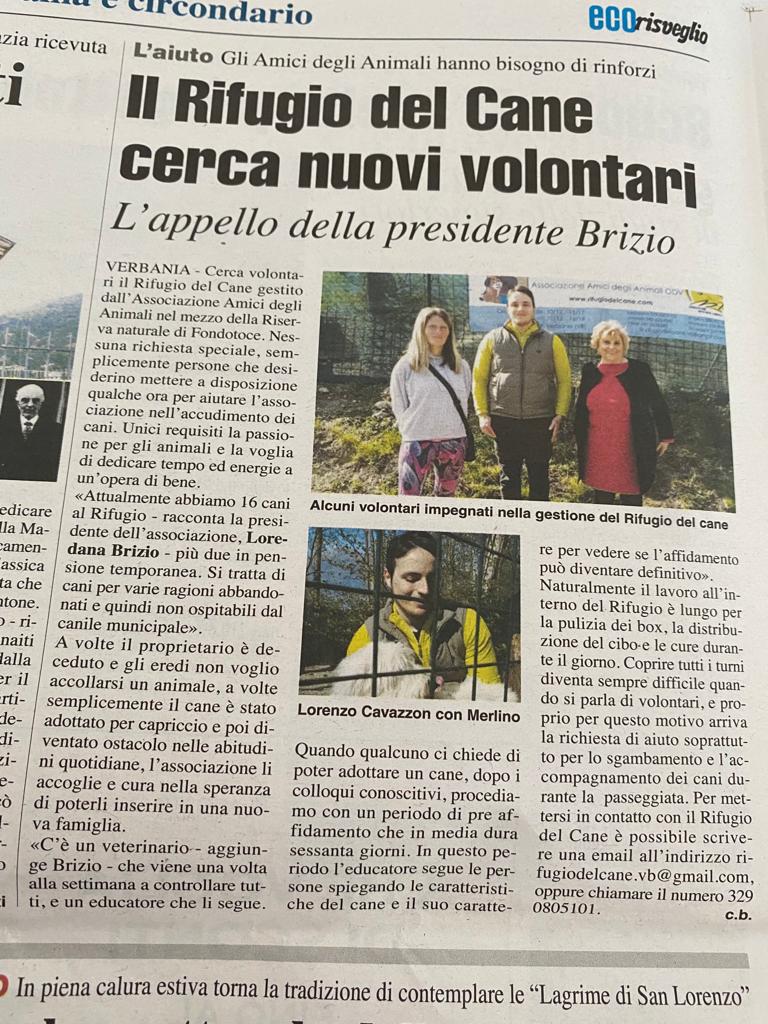 RIFUGIO DEL CANE DI FONDOTOCE e del CANILE MUNICIPALE DI VERBANIA, nella